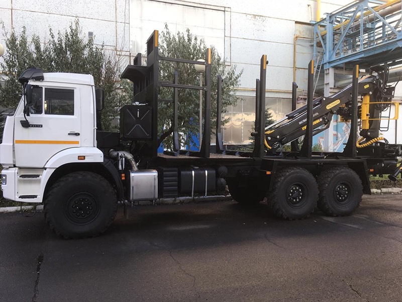 Лесовоз на базе КамАЗ с КМУ VM10L74 используется для транспортировки леса, сортимента, столбов и бревен длиной до 6 метров. Мощный дизельный двигатель (до 300 л.с.), грузоподъемность стрелы до 3,1 тонны и широкий вылет а 7,4 метра позволяют выполнить самые сложные задачи.